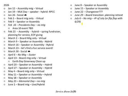 2026 Meeting Schedule | Dec 23, 2025 |